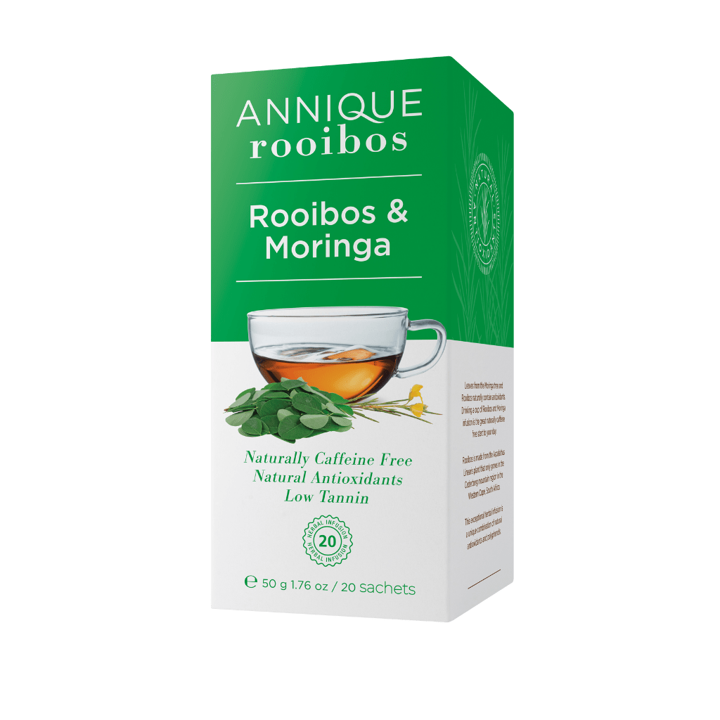 Have you heard of moringa, a plant native to India that has been dubbed a “miracle tree” because of its potential medicinal properties?  Annique’s Rooibos and Moringa tea is the ideal beverage for anyone who wants a healthy start to the day.